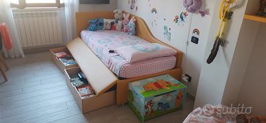 letto singolo in legno / ecopelle comprensivo di materasso e rete con doghe in legno. Comprato da mobiliere, robusto, ottimo stato.