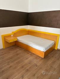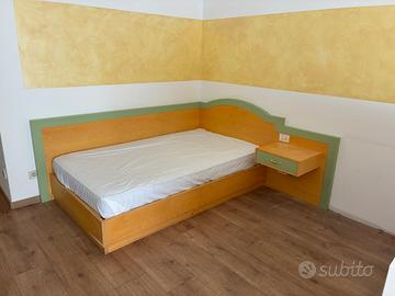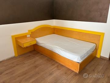 Letto singolo alla francese conpreso di comodino e materasso. Misure materasso 115x200, misure struttura conpleta con comodino 200x220.