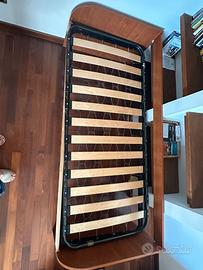 Letto singolo in legno con rete a doghe e secondo letto estraibile sottostante. Design compatto e funzionale, ideale per camere da letto, case vacanze o camere per gli ospiti.
