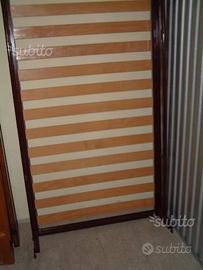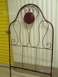 Letto singolo ORIGINALE '800 di colore bordeaux. Finemente restaurato con pianale per materasso realizzato con moderne doghe in legno. Spalliera e pediera del letto completamente in ferro lavorato con piattelle centrali ornamentali. Disponibile anche asta in ferro ricurva che veniva utilizzata per appendere la zanzariera. Misure spalliera: larghezza 95 cm, altezza 195 cm. Misure pediera: larghezza cm 95, altezza cm 105. Lunghezza del letto: 195 cm. Condizioni ottime. Trasportabile gratuitamente a domicilio nel raggio di 80 km. Euro 220,00.
