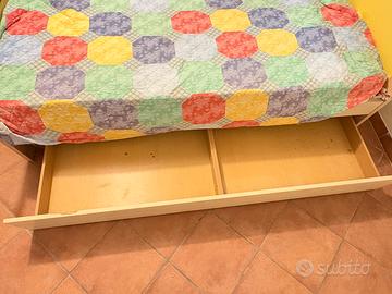 Vendo letto singolo 90×200 cm con cassettone contenitore suddiviso in due scomparti, pratico e funzionale per ottimizzare lo spazio.