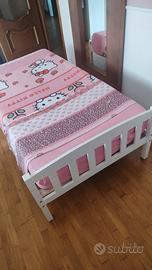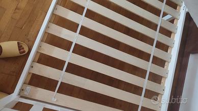 struttura letto singolo in legno massello di pino con doghe, elegante e robusto. struttura telaio letto colore bianca. 90 x 190 cm con testiera. compreso nel prezzo anche materasso e coprimaterasso impermeabile
