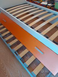 Vendo letto singolo 90x200 cm con secondo letto estraibile 80x200 cm, entrambi con rete a doghe. Struttura solida e di ottima qualità, acquistato presso un mobiliere (non da grande distribuzione). Il letto principale è dotato di ruote, con due levette di blocco nella parte inferiore che permettono di spostarlo comodamente e fissarlo in posizione in modo stabile. Anche il letto estraibile è provvisto di ruote, per un’apertura e chiusura pratica e veloce. Entrambi i letti sono in ottime condizioni, poco utilizzati e ben tenuti. Inclusi nel prezzo entrambi i materassi. Ideale per cameretta, stanza ospiti o per chi ha bisogno di un secondo letto all’occorrenza. Prezzo: €220 Disponibile per visione e solo ritiro a mano.