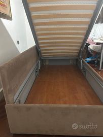 Vendo letto singolo (90*180) contenitore completo di materasso colore nocciola con letto e materasso sfoderabile