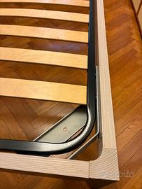Letto singolo con rete in ottime condizioni. Legno massello chiaro. Rete con doghe di legno. Ottime condizioni, nessun segno di usura. Rete e letto completamente smontabili. Legno schiarito grigio chiaro. Materasso venduto a parte con molle insacchettate 90x195. In ottime condizioni utilizzato sempre con copri materasso e girato ciclicamente. Letto e materasso made in Italy