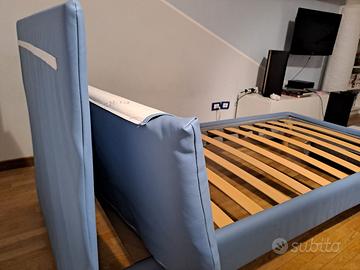 La testiera imbottita è sfoderabile, facilmente sostituibile e removibile. Come si vede in foto, il cuscino della testiera presenta un piccolo difetto (come da foto), ma questo non compromette la funzionalità del letto e può essere risolto semplicemente sostituendo la fodera o rimuovendola.