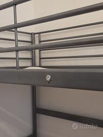 Usato in ottime condizioni, solido e stabile. Scala con antiscivolo in perfette condizioni. Unico graffio in prossimità di una vite come da foto. Già smontato. Misure materasso 90×200 cm, ingombro letto 95x209x186h. Ingombro delle testate 95x186 (dato utile per il trasporto). Materasso non compreso. Ritiro a Casalecchio di Reno. € 120