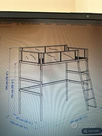 Letto singolo a soppalco usato pochissimo. Acciaio bianco e tessuto grigio lavabile. Prezzo trattabile