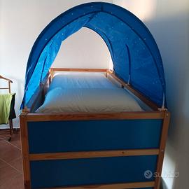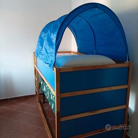Letto reversibile Kura Ikea pine-blu completo di tenda