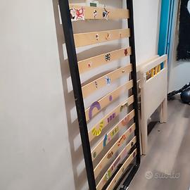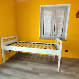 letto singolo misura 90*200 alto 70 gia' smontato 4 cubi di cui 2 verdi e 2 arancioni con mensola centrale 30*35