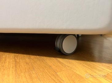 Letto in pelle grigio e legno con ruote del brand Poltrona Frau, completamente rivestito in pelle grigio la struttura, la testiera il legno rivestito con intreccio di pelle imbottita grigio. Dimensioni materasso 100cmx200 . In ottime condizioni.