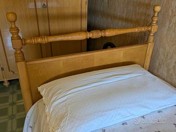 letto singolo anni 70, legno massello, con rete e materasso, come da foto, materasso singolo 80 cm