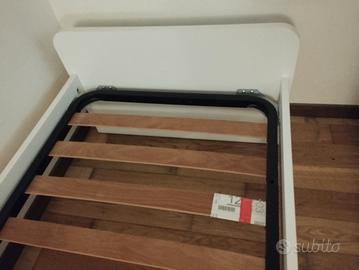Letto singolo bianco con seconda rete che si alza e forma un letto matrimoniale. Misura 210 x 90 cm.