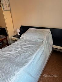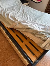 Struttura letto singolo fatta a mano con due cassetti ai lati, con due contenitori sottostanti, rete doghe e incluso di materasso
