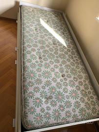 Letto singolo in legno bianco con due ampi cassettoni comoreso di materasso