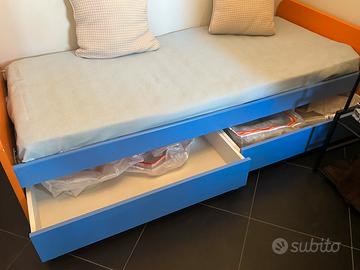 Causa inutilizzo, vendo letto singolo e tre sedie con colori coordinati. Il letto, acquistato da un mobiliere, (no centro commerciale) presenta due ampi cassetti per riporre coperte o altro a seconda delle necessita’.