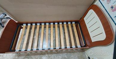 vendo letto singolo in legno di ciliegio,no compensato,compreso di rete. trasporto a carico dell'acquirente.visto e piaciuto.usato ma tenuto bene.prezzo affare per urgenza sgombero stanza.