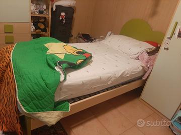 con rete in doghe di legno ikea che si appoggia su appositi sostegni del letto.