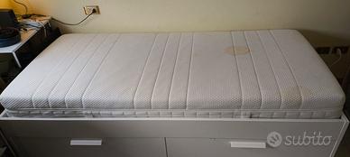 Letto singolo completo Ikea Brimnes con materasso in memory e rete a doghe.