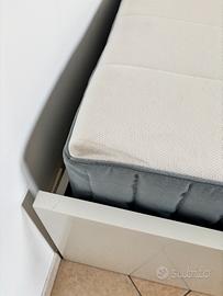 Vendo metto singolo usato ma tenuto molto bene .. Il letto ha 2 cassetti capienti e molto comode.. Vendo in sieme al materasso mai usato. Come vedete in foto si e un po sporcato nell’angolo ma e successo facendo il trasloco. (Non e machiato ) . Solo interessati veramente.