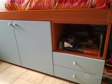 Letto singolo di marca nota "giessegi" Con mobile sottostante a 2 ante profondo, con 4 cassetti e 2 vani. Molto capiente e comodo. Si vende senza materasso.