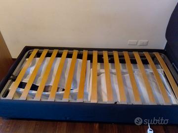 letto singolo con cassettone, rivestimento in tessuto, alcune doghe rotte ovviamente solo ritiro in loco Regalo a che viene a prenderlo