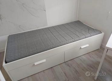 Vendo struttura letto singolo con cassettoni, in ottime condizioni. Se interessati, si vende anche materasso e scrivania. Prezzo trattabile.
