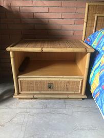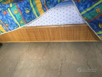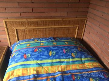 Vendo struttura letto singolo in rattan/ bamboo con rete a doghe e comodino con cassetto. Solido e di ottima fattura in condizioni pressoché perfette. Disponibili 2 letti e 2 comodini.