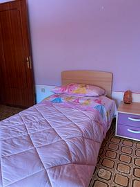 Il letto singolo è composto da rete, struttura in legno e materasso 90cm x 190cm ( altezza 12 cm ). Il tutto in ottime condizioni e usato pochissimo. La testiera non presenta graffi o inestetismi e le doghe del letto sono coperte da uno telo protettivo rimovibile. Il comodino è in buone condizioni e non presenta graffi o ammaccature nei bordi/angoli. Questi due pezzi fanno parte di una camera coordinata, quindi se ti interessa un armadio, un settimino ed una scrivania in ottime condizioni da abbinare a questi due pezzi, fai un salto sul mio profilo, lì trovi tutto ! ✨