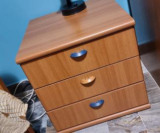 Letto singolo con design semplice e moderno in legno di colore ciliegio. In aggiunta materasso morbido Permaflex e rete classica. Misure standard. Comodino a tre cassetti abbinato. In ottime condizioni. Prezzo tutto compreso 198 euro. Ritiro con furgone o macchina spaziosa.