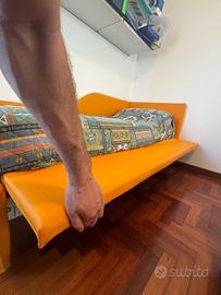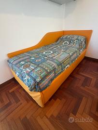 Letto singolo in ecopelle Con doghe in legno Incluso il materasso Con apertura per sfruttare il sotto , come contenitore ( vedi foto )