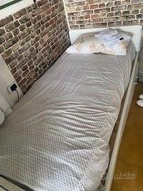 Letto singolo 2metri x 1 metro con materasso alto e doghe in legno, perfetto per chi ha problemi di cervicale e schiena. 150 EURO non trattabile.