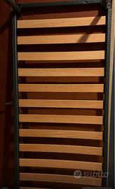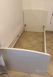 Letto singolo 90x190 in legno, con doghe in legno, di colore bianco, con pediera e testata. Ben tenuto.