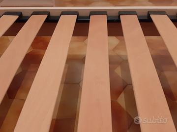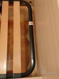 Letto singolo in legno compreso di doghe in legno e piedi in ferro come da foto Lunghezza : 200 cm Larghezza : 86,5 cm Altezza : 30,5 cm Pediera alta : 59 cm Testiera alta : 74 cm Ritiro e trasporto a carico dell acquirente