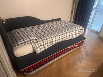 Vendo Letto ad una piazza testata 90x 1,90 con materasso di 80x1,90, imbottitura blu con secondo letto estraibile ( vedi foto) stesse misure.