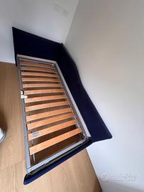 Letto singolo con letto estraibile testata e bordi imbottiti. Doghe in legno e 2 materassi ortopedici. Prezzo € 130. Smontaggio e ritiro a carico acquirente. Brescia città.