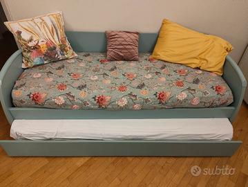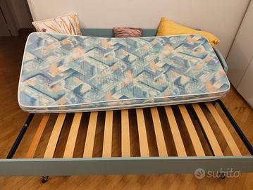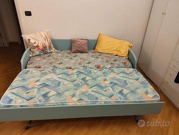 vendo comodo letto singolo con doghe si trasforma in letto matrimoniale o due letti separati . con sponda laterale da usare come comodo divano 200x90. vendo anche 2 materassi singoli insieme o separatamente . si può smontare e rimontare semplicemente. usati poco