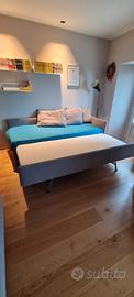 letto singolo realizzato da artigiano (misure lunghezza cm 204, prof. cm 93, altezza spalliera 69), completamente sfoderabile e in ottime condizioni, tessuto color grigio e comprensivo dei 3 cuscini in foto.
