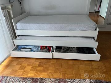 letto ikea SLAKT. Letto singolo con secondo letto a scomparsa e cassetti. Misure: 90x200