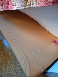 letto singolo con fodera color arancio/pesca dimensione 2 metri × 90 cm / materasso in ottime condizioni memory, letto con testata imbottita. RITIRO IN LOCO