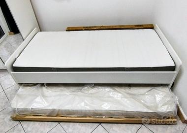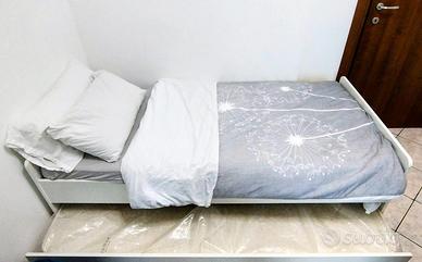 Vendo letto 90x190 con struttura e doghe in legno, completo di secondo letto a cassetto, due materassi in schiuma senza alcuna macchia. Tutto in ottimo stato. Già smontato e disponibile al piano terra, pronto per il trasporto.