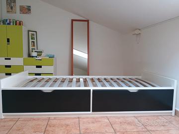 vendo letto singolo ( 200 x 90 ) con cassettoni e doghe in legno più materasso con banda in memory , anche singolarmente