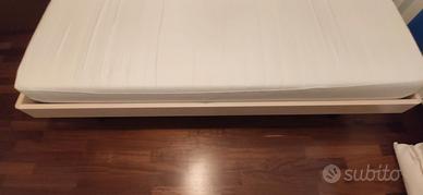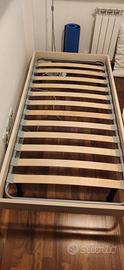 Vendo letto singolo incluso di materasso memory sfoderabile, coprimaterasso antiacaro e rete a doghe di legno, causa cambio di destinazione d'uso della cameretta. Dimensioni del materasso 190cmx90cm altezza 20cm. Dimensioni del letto 201cmx96,5cm altezza 39cm (altezza con materasso 53cm). Struttura in legno e acciaio sull'appoggio della rete. Si possono sostituire i gambi con quattro grandi ruote con bloccaggio (consegnate a corredo), per poterlo spostare con semplicità.