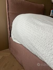 Vendo letto singolo completo di materasso con testiera imbottita in tessuto cotone e lino color malva . Contenitore sotto il letto . Possibilta’ di rimuovere la testiera . Tutto completamente sfoderabile e lavabile in lavatrice . Ottime condizioni .