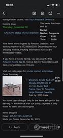 Condizioni come nuove - utilizzato solo poche volte dagli ospiti Incluso : 1 struttura del letto in metallo smontabile 1 piumino d'oca singolo 1 materasso singolo 1 lenzuolo nero 1 federa nero 1 cuscino 1 copripiumino nero Costa originale: €365
