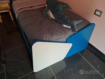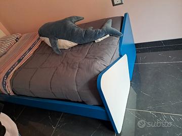 letto singolo con rete bianco e blu avio 90x200