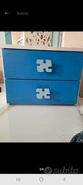 vendo letto singolo composto da rete a doghe e giroletto in legno bianco, e comodino.