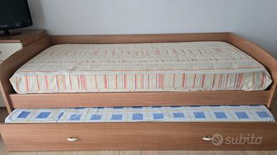 Vendo struttura letto singolo in legno con secondo letto a cassetto estraibile.
