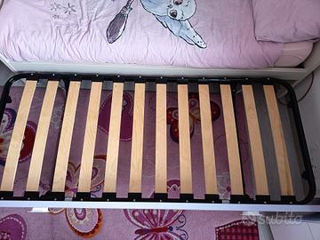 Nella cassettiera in basso è presente una rete con doghe in legno per un secondo letto.