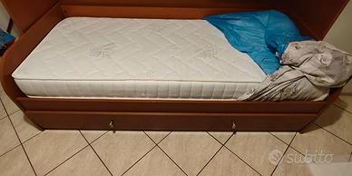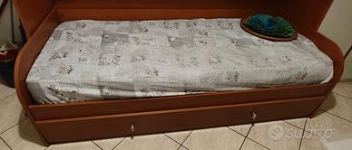 Vendo pratico letto singolo in legno (finitura ciliegio/noce chiaro), ideale per camerette o stanze degli ospiti. Caratteristiche principali: Secondo letto incluso: La parte inferiore ospita un cassettone estraibile con rete e materasso, pronto all’uso per un secondo ospite. Salvaspazio: Quando non serve, il secondo letto scompare completamente sotto la struttura principale. Incluso nel prezzo: Struttura letto + rete superiore + rete estraibile inferiore + 2 materassi. Ritiro a carico dell acquirente
